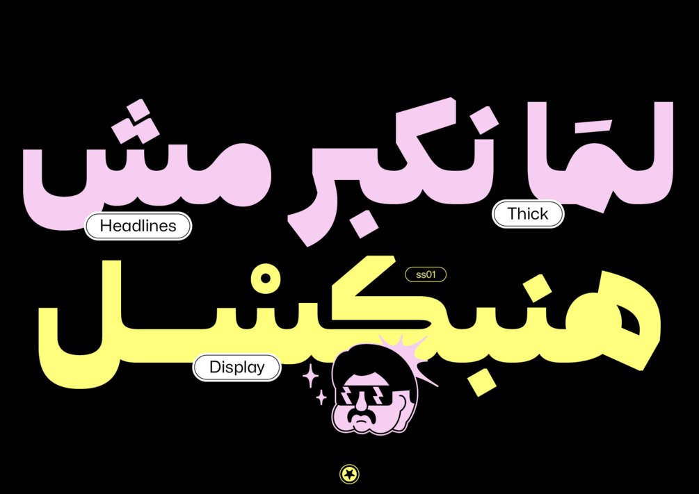 Zael is an eye-catching Arabic display typeface designed with a thick base inspired by the Naskh script, making it visually appealing for screens and headlines. This typeface takes inspiration from classic Naskh calligraphy but incorporates modern touches, making it well-suited for contemporary designs. It is an excellent choice for creating captivating posters and visuals that seamlessly align with modern brands.