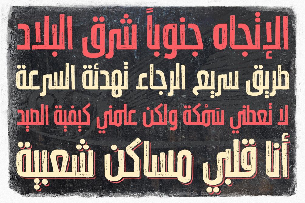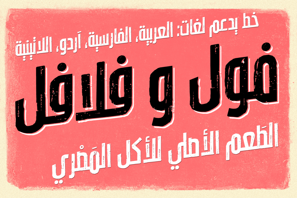 Lavah Pro is the enhanced and updated version of the leaked version (Lava Arabic) since 2013. Lavah Pro is Arabic condensed/narrow with grunge and rough style for vintage style posters, brands or ads, and is very fitting with beverages and food ads or movie poster. Lavah Pro is supported by OpenType Features with many Stylistic Alternates and Discretionary Ligatures, and It's support Arabic, Persian, Urdu and Latin. Designed and created by Ibrahim Hamdi Copyright © 2019 by Protype Foundry. All rights reserved.